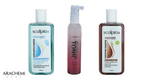 یکی دیگر از محصولات ضد ریزش مو را میتوانیم تونیک تقویت کننده اسکالپیا معرفی کنیم. این محصول نیز دارای ترکیبات گیاهی و موثر مختلفی مانند عصاره ریشه لیکوریس، کافئین، عصاره برگ چای سبز، عصاره رازک، بیوتین، عصاره گزنه، متیل نیکوتینات و نیاسینامید است.
